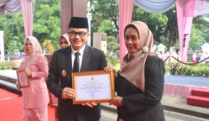 Penghargaan tersebut diserahkan langsung dalam upacara yang dipimpin oleh Pj. Bupati Cirebon, Drs. H. Wahyu Mijaya, S.H., M.Si., sebagai pembina. Hadir pula Kepala Dinas PPKBP3A, H. Sri Saniri, S.H., M.H., beserta sejumlah pejabat penting dan tokoh masyarakat lainnya.