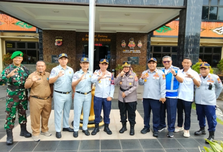 Kadishub, Hilman Firmansyah foto bersama Kapolresta Cirebon, Kombes Sumarni usai apel gelar pasukan Operasi Keselamatan Lodaya 2025.* (Foto: Ist/CN)