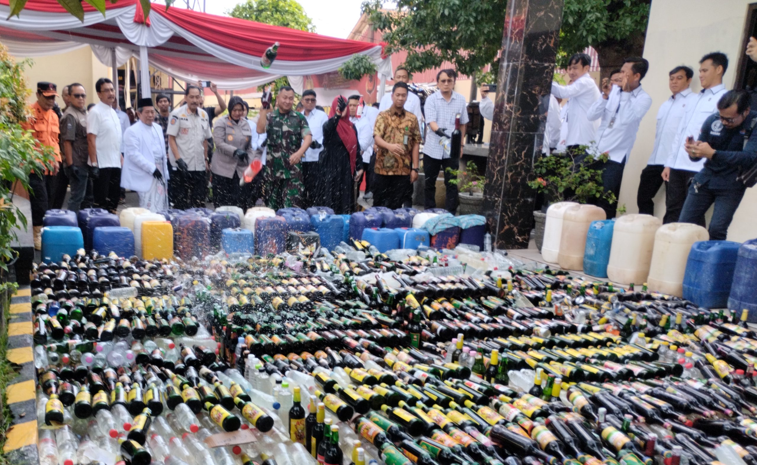 Ribuan botol minuman keras (miras) dimusnahkan oleh Kepolisian Resor Kota (Polresta) Cirebon dalam aksi pemberantasan peredaran miras di wilayah Kabupaten Cirebon. Operasi ini merupakan bagian dari Kegiatan Rutin yang Ditingkatkan (KRYD) yang digelar kepolisian setempat.
