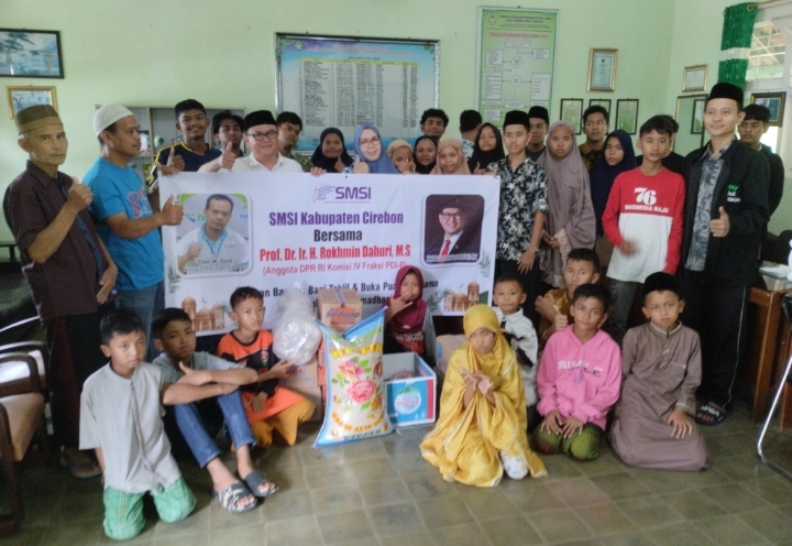Anggota DPR RI, Prof. DR. Ir. Rokhmin Dahuri, M.S., bersama Serikat Media Siber Indonesia (SMSI) Kabupaten Cirebon melakukan kegiatan sosial pemberian bahan makanan ke anak-anak di Panti Asuhan Budhi Asih di Jalan Wahidin, Kota Cirebon.