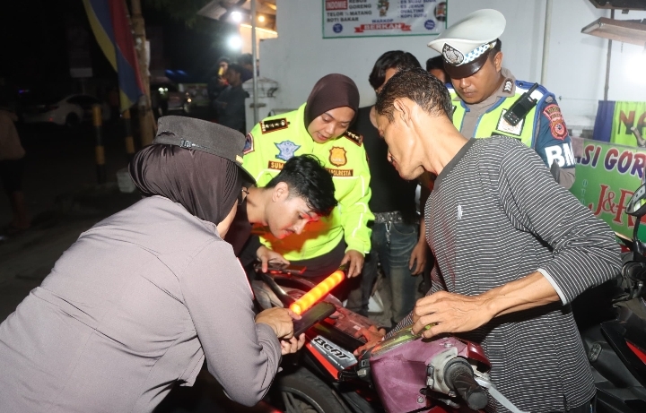 Di sisi timur, Kabag Ops Kompol Sutarja, S.H., M.H. memimpin jalannya razia bersama Kasat Intelkam Kompol Joni Surya Nugraha, S.I.P., M.H. dan tim. Hasilnya, enam sepeda motor tanpa kelengkapan surat resmi ikut diamankan.