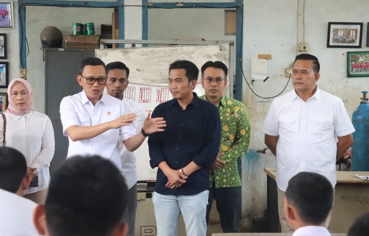 Menteri Perlindungan Pekerja Migran Indonesia, H. Abdul Kadir Kariding, ke UPTD Pelatihan Kerja milik Dinas Ketenagakerjaan Kabupaten Cirebon, Sabtu (17/5/2025).* (Foto : Ist/CN)