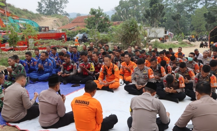 Polresta Cirebon bersama TNI, Brimob, BPBD, Basarnas, relawan, hingga warga sekitar berkumpul dan menundukkan kepala dalam satu ikatan, mendoakan para korban. Dipimpin Ustadz Aiptu Carmadi, doa bersama ini menjadi bentuk empati sekaligus penguat hati bagi semua pihak yang terlibat.