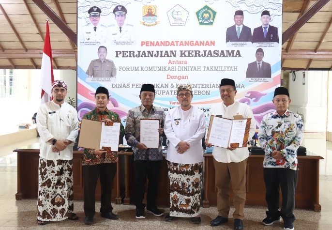 Pemerintah Kabupaten Cirebon kembali bikin gebrakan positif di dunia pendidikan. Lewat kerja sama antara Dinas Pendidikan dan DPC Forum Komunikasi Diniyah Takmiliyah (FKDT), kini siswa Sekolah Dasar (SD) diwajibkan mengikuti pendidikan madrasah diniyah. Program ini resmi diluncurkan lewat penandatanganan MoU yang digelar di Pendopo Bupati, Kamis (19/6/2025).
