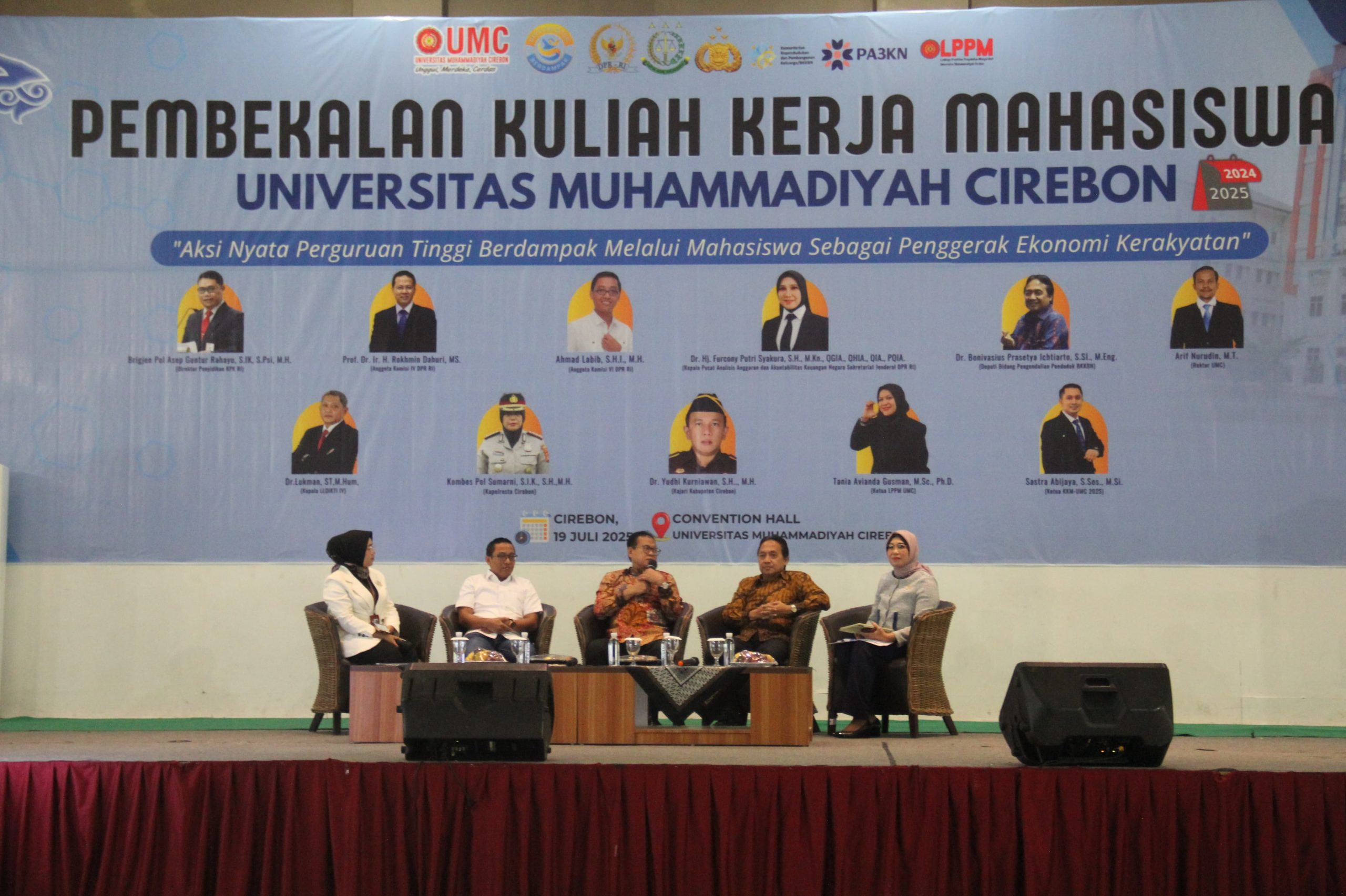 Sebelum turun ke desa-desa, seribuan lebih mahasiswa itu mendapat pembekalan dari anggota DPR RI, Prof. Dr. Ir. Rokhmin Dahuri, M.S., Direktur Penyidikan KPK, Brigjen Pol. Asep Guntur Rahayu, Kapolresta Cirebon, Kombes Pol. Sumarni dan para akademisi. Kegiatan pembekalan berlangsung Sabtu (19/7/2025) di Kampus UMC Watubelah, Kabupaten Cirebon, Jawa Barat.