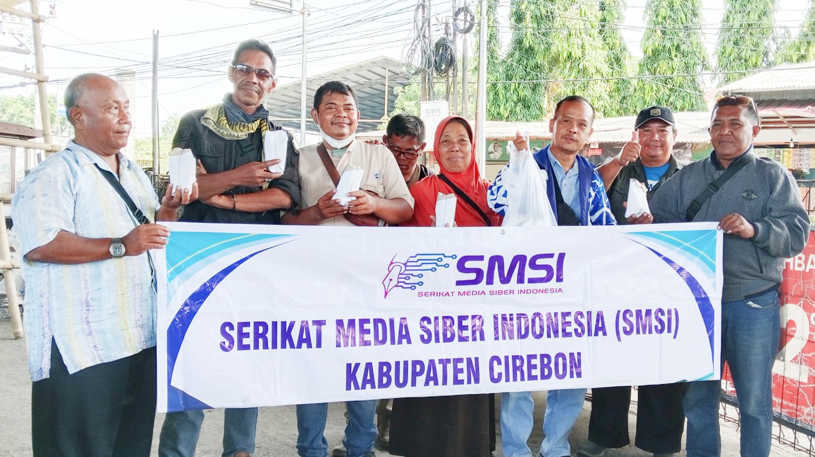 Sebagai bentuk kepedulian sosial kepada sesama dan semangat berbagi, Serikat Media Siber Indonesia (SMSI) Kabupaten Cirebon membagikan puluhan nasi bungkus ke driver ojek online (ojol), penjaga perlintasan pintu kereta api dan lainnya.