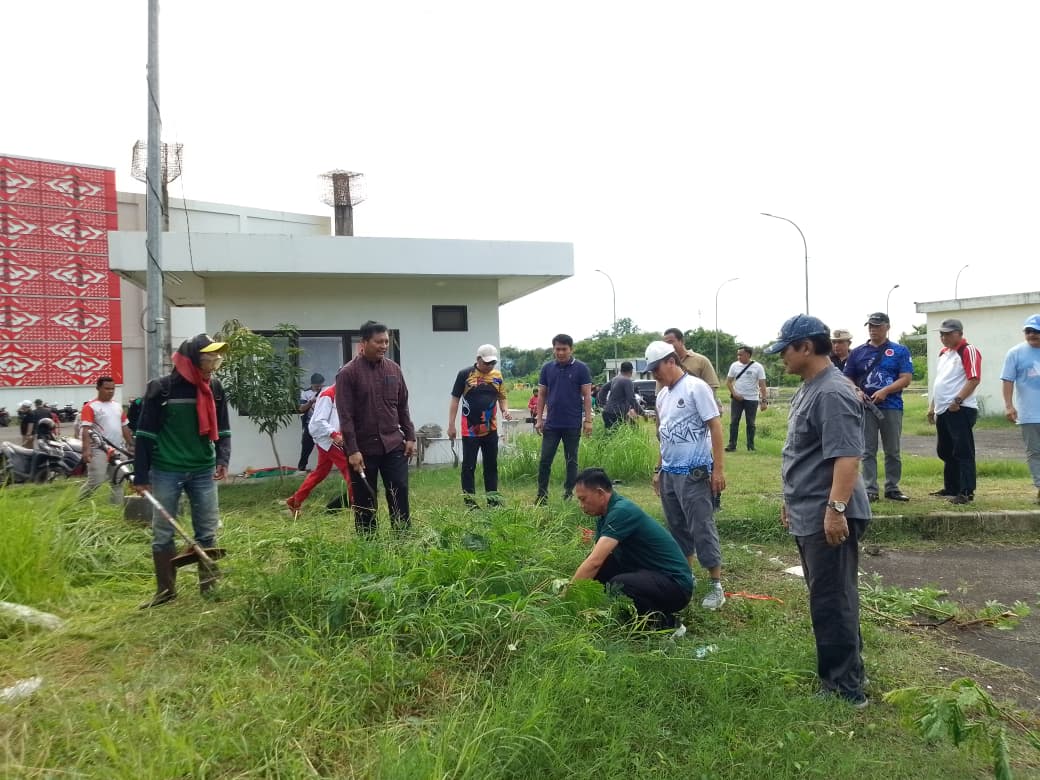 Ketua Komite Olahraga Nasional Indonesia (KONI) Kabupaten Cirebon, H. Agus Kurniawan Budiman memimpin kegiatan bersih-bersih lingkungan di kawasan Sport Center Watubelah Sumber.