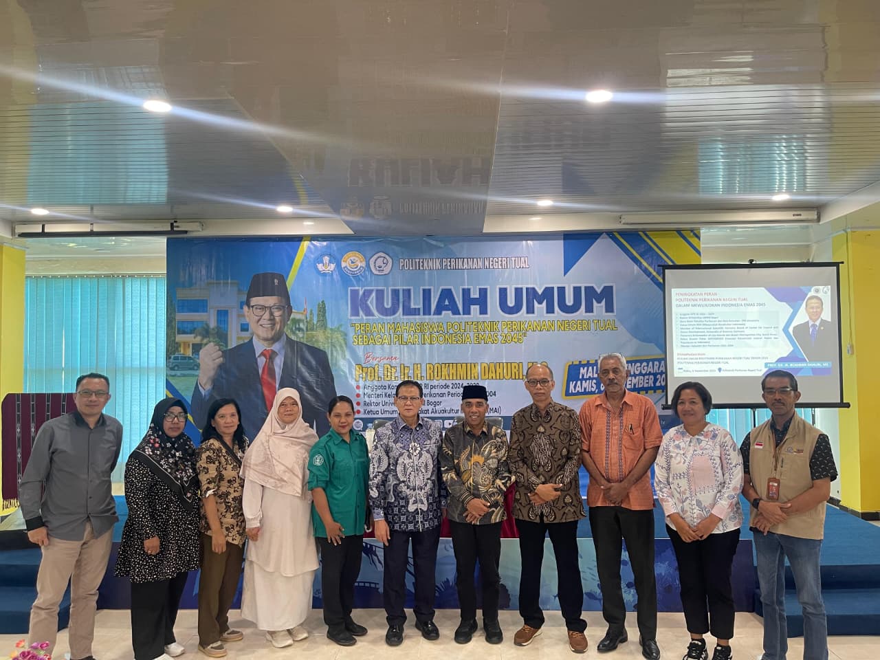 Prof. Rokhmin menyampaikan materi dengan judul, “Peran Mahasiswa Politeknik Negeri Perikanan Tual dalam Mewujudkan Indonesia Emas 2045”.