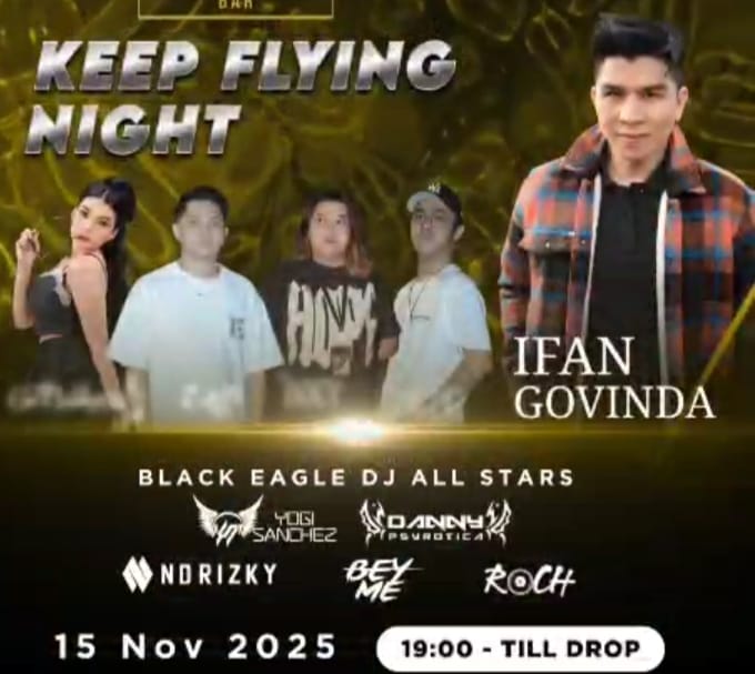 “Betul, Ifan Govinda akan nyanyi di lantai 3 Black Eagle. So pasti, ada banyak cewek Cirebon yang datang pada 15 November 2025. Jadi, buruan reservasi dari sekarang. Jangan sampe kehabisan, karena tempat duduknya terbatas. Sekali lagi, cepetan reservasi tempat duduk,” tandas Yovfanri Prasetya atau akrab disapa Yovan, pimpinan Black Eagle Cirebon.