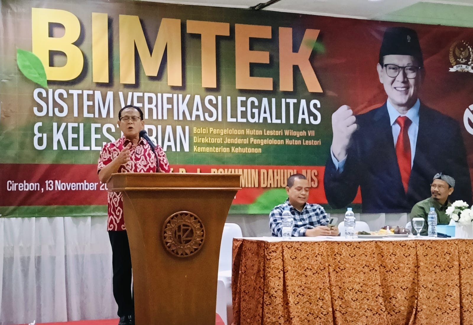 Prof. Rokhmin memberi apresiasi atas dilaksanakannya Bimtek Sistem Verifikasi Legalitas dan Kelestarian (SVLK). Harapannya, akan banyak warga yang berwirausaha dibidang kehutanan.