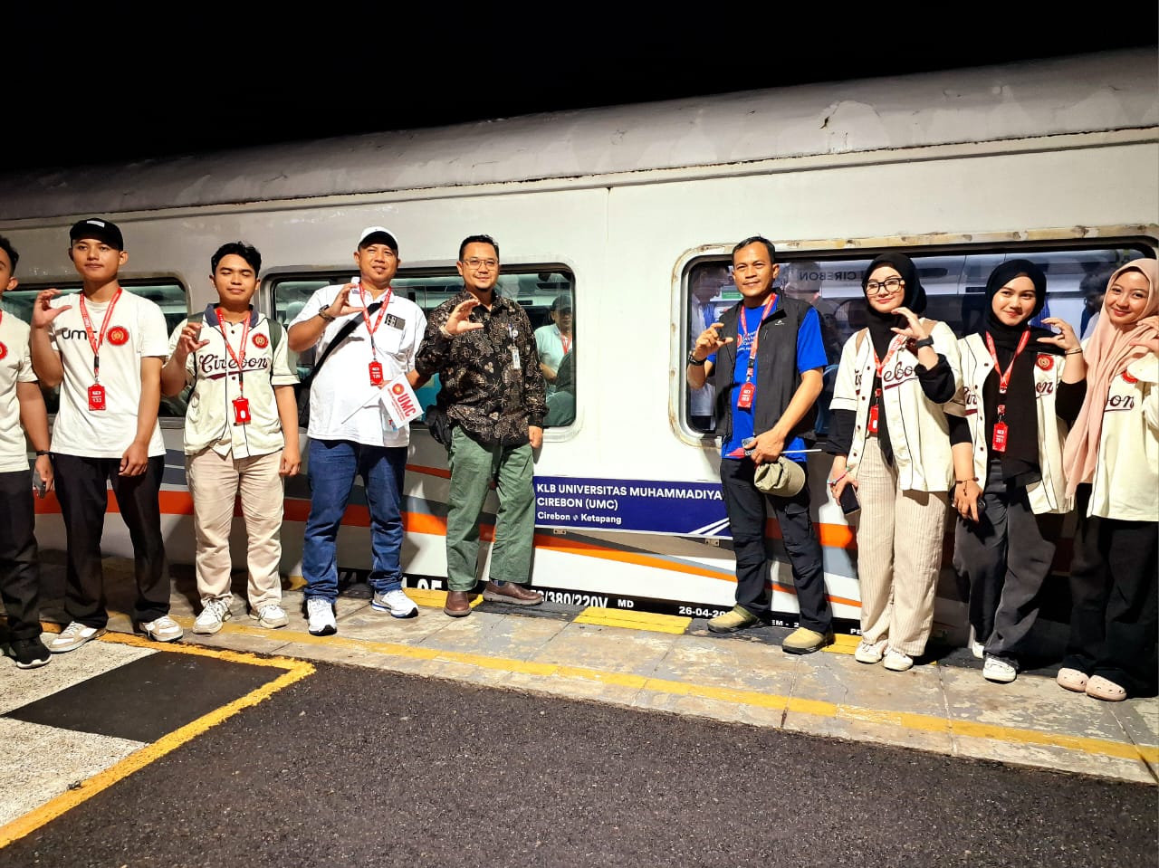 Rombongan yang terdiri dari dosen, mahasiswa, tenaga kependidikan dan pengurus UMC melakukan perjalanan menggunakan kereta luar biasa (KLB) dari Stasiun Cirebon menuju Stasiun Ketapang Banyuwangi Jawa Timur.