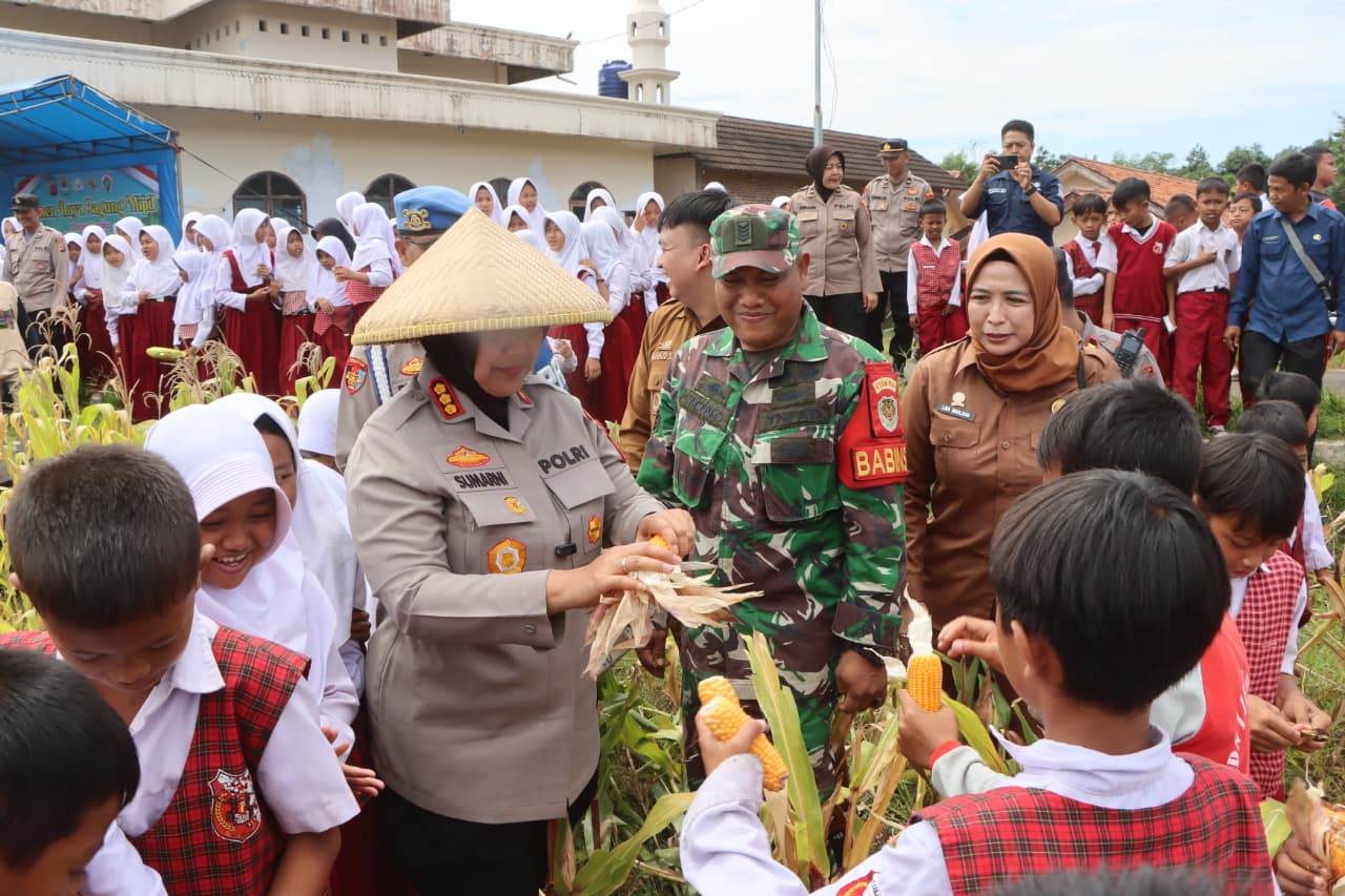 Kehadiran para siswa sekolah dasar dalam kegiatan ini menjadi daya tarik tersendiri, sekaligus momen edukasi langsung tentang pentingnya pertanian dan kontribusi Polri dalam mendukung ketahanan pangan.