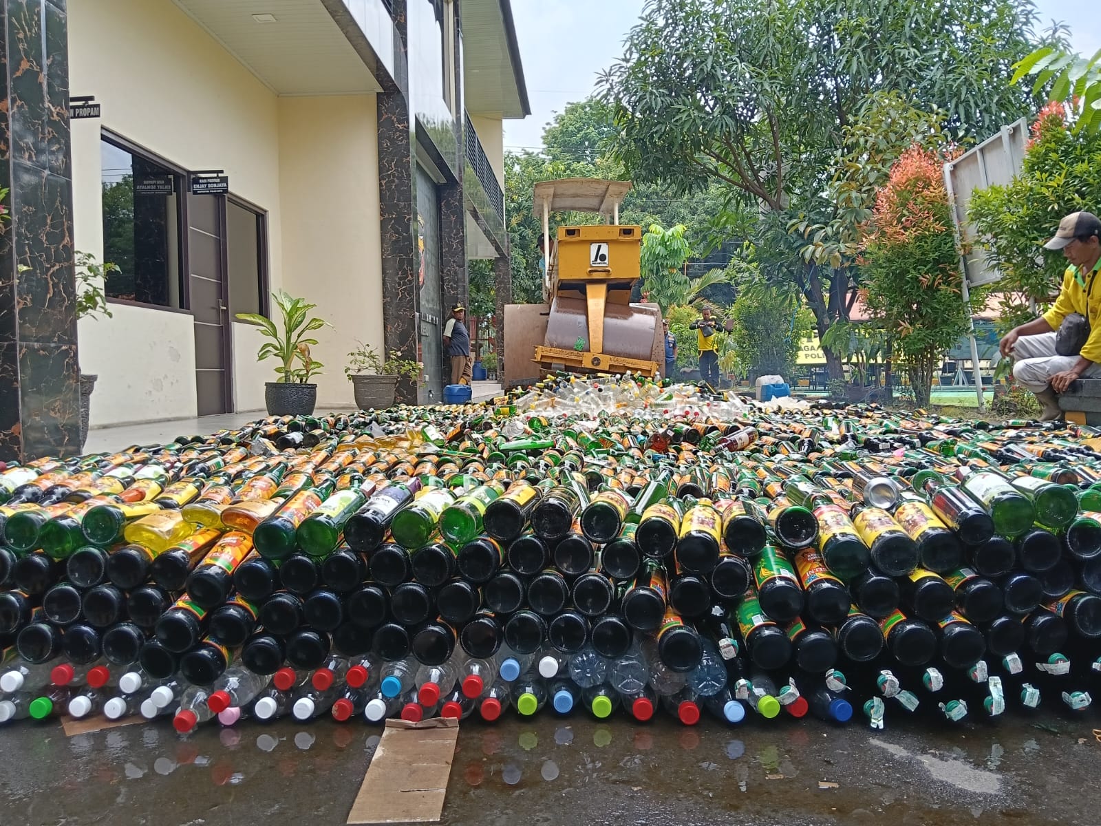 Pihaknya juga mengamankan 2.456 knalpot tidak sesuai spesifikasi teknis atau knalpot brong. Barang bukti ribuan botol miras dimusnahkan, setelah dilakukan penandatangan berita acara pemusnahan.