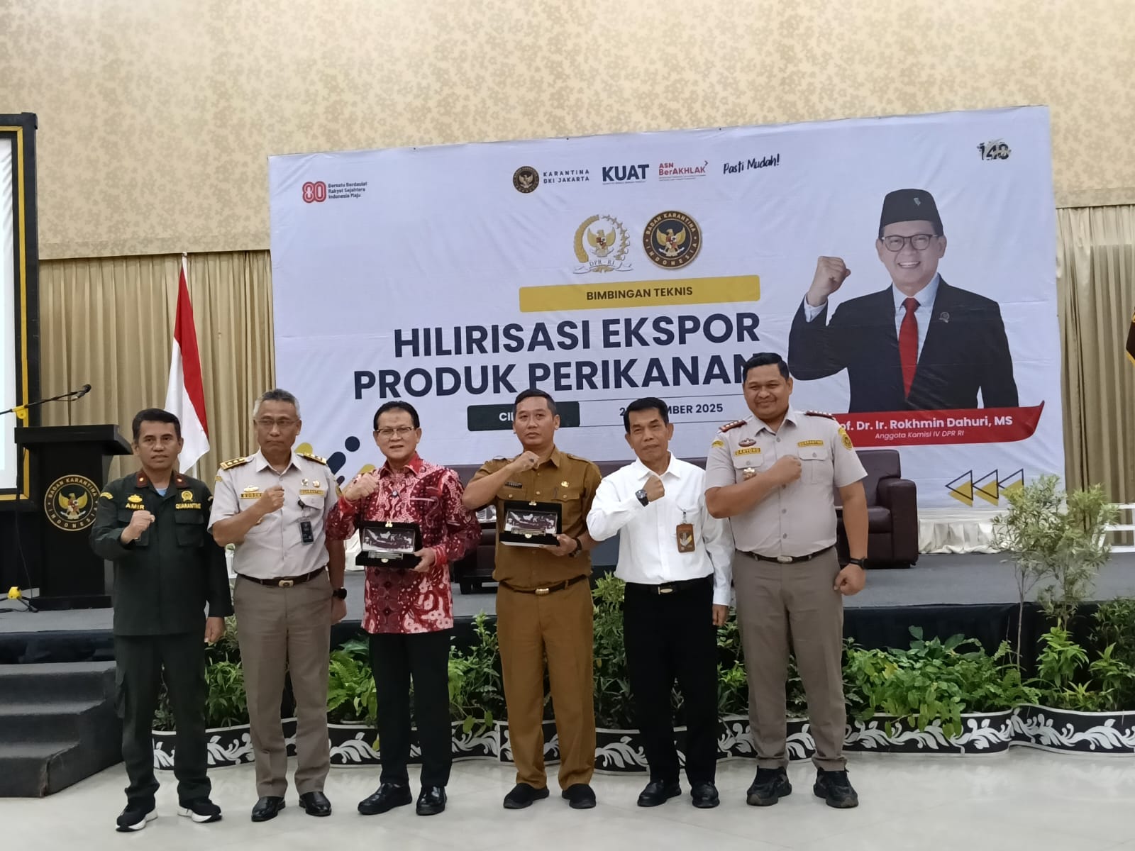 Acara yang berlangsung di Hotel Grage Cirebon pada Selasa (23/12/2025), dihadiri Direktur Manajemen Risiko Karantina Ikan Barantin, Sugeng Sudiarto, Kabalai Besar KHIT DKI Jakarta, Amir Hasannudin, Kabalai KHIT Jawa Barat, Cahyono, Katimja Garam KKP, M. Dzaki dan Andri Melasa, Sekdis DKPP Kab. Cirebon.