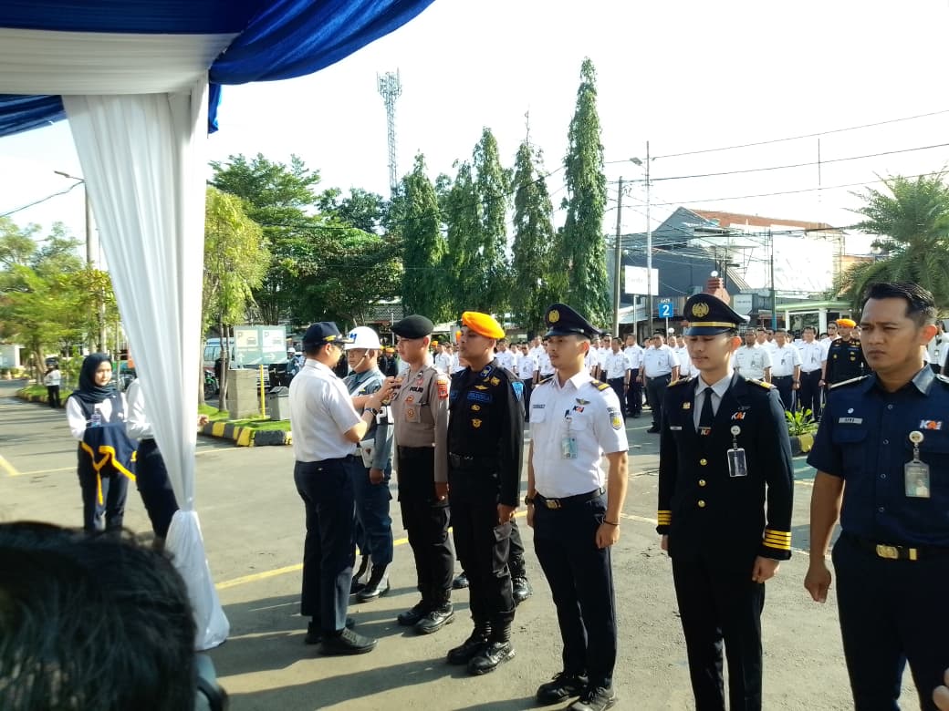 Apel gelar pasukan dilaksanakan di halaman Stasiun Cirebon dengan pembina upacara Vice President Daerah Operasi 3 Cirebon, Sigit Winarto.