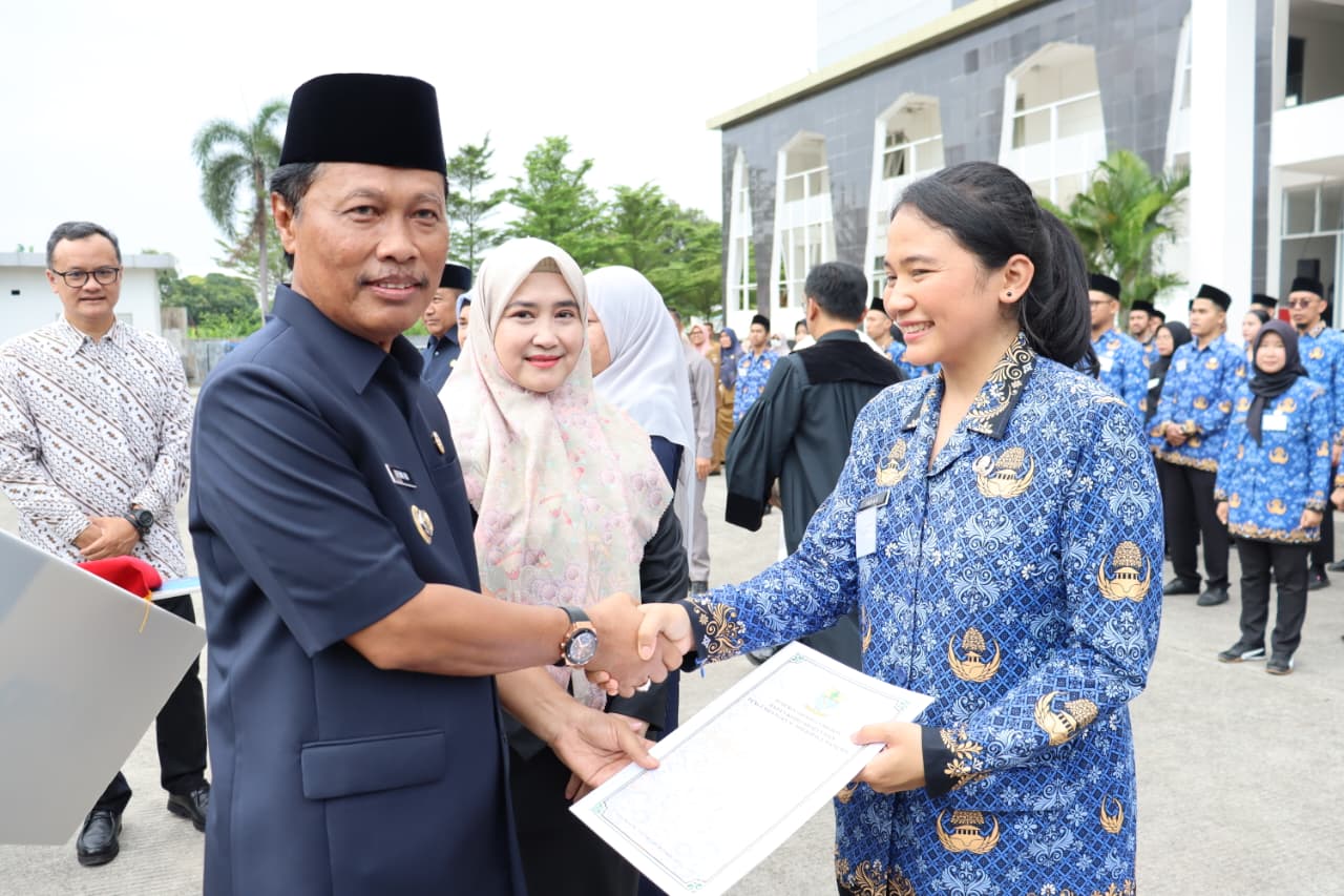 Wali Kota Cirebon, Efendi Edo bersama Wakil Wali Kota (Wawali) Cirebon, Siti Farida hadir langsung dalam pengambilan sumpah/janji dan menyerahkan SK Pengangkatan kepada Pegawai Negeri Sipil (PNS) di lingkungan Pemerintah Kota Cirebon, pada Selasa (31/3/2026).