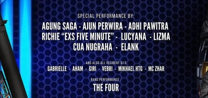 Ada Agung Saga, Ajun Perwira, Richie “Eks Five Minute”, DJ Lucyana, DJ Lizma, Cua Nugraha dan Elank.