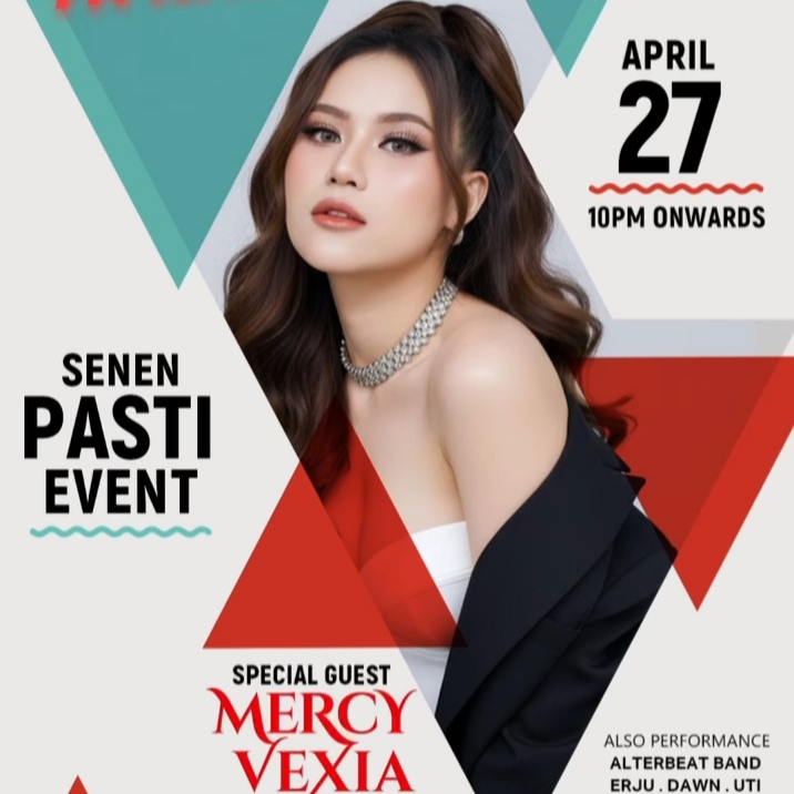 DJ Mercy Vexia bakal tampil Senin (27/4/2026) malam ini di lantai 2 Versus Cirebon yang berlokasi di Ruko Kagum di Jalan Tuparev, Kedawung.